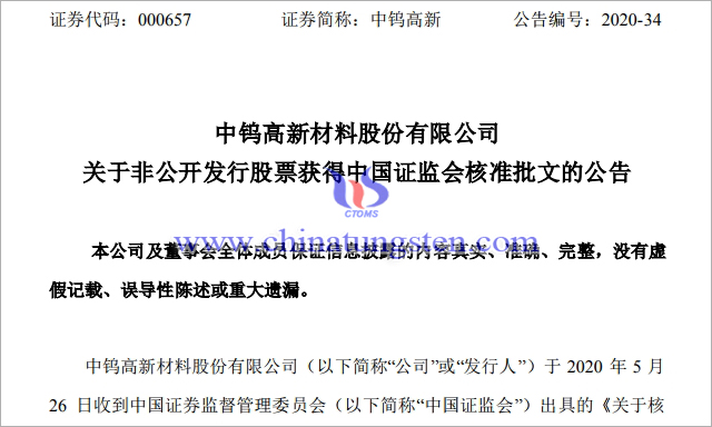 中鎢高新定增獲批 擬用于硬質(zhì)合金與精密工具項(xiàng)目